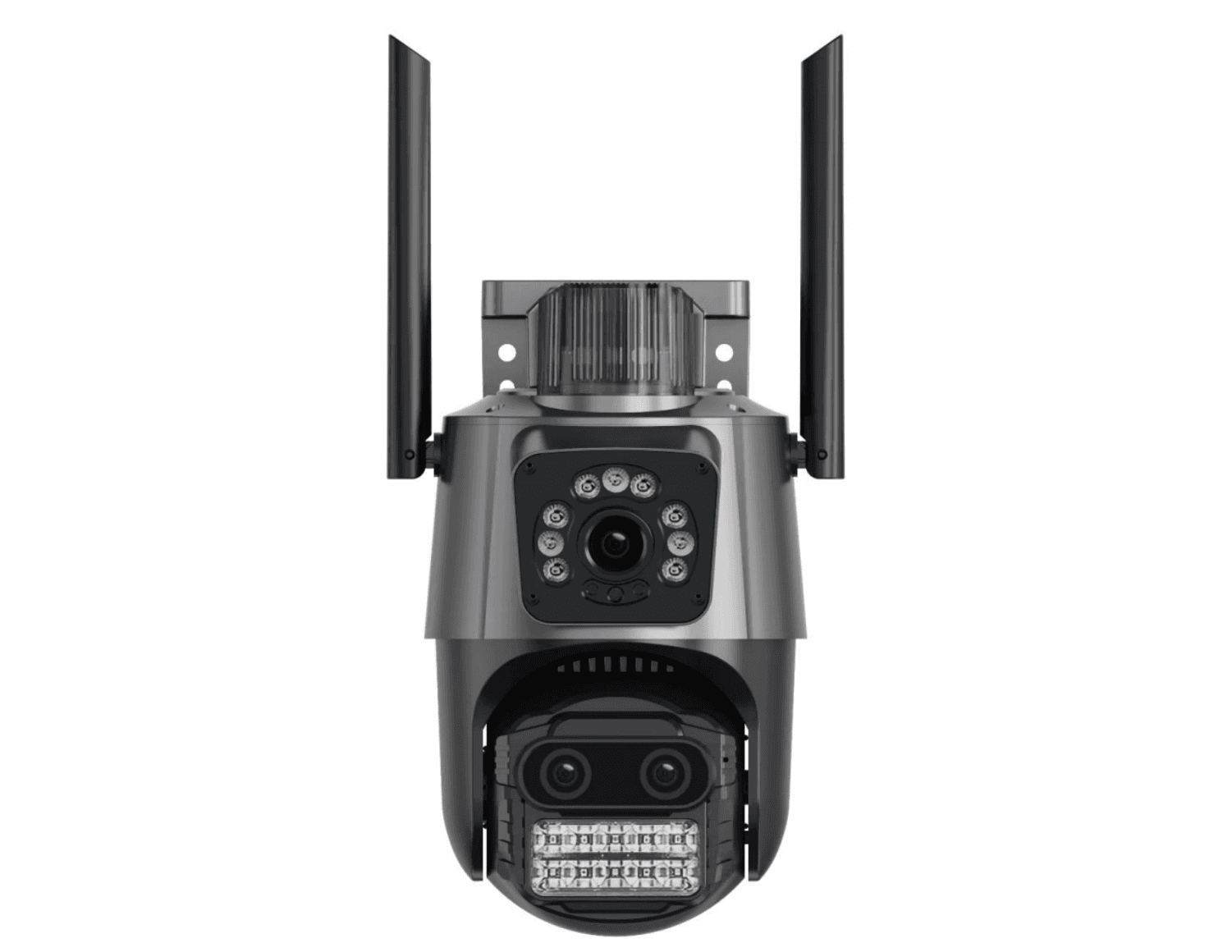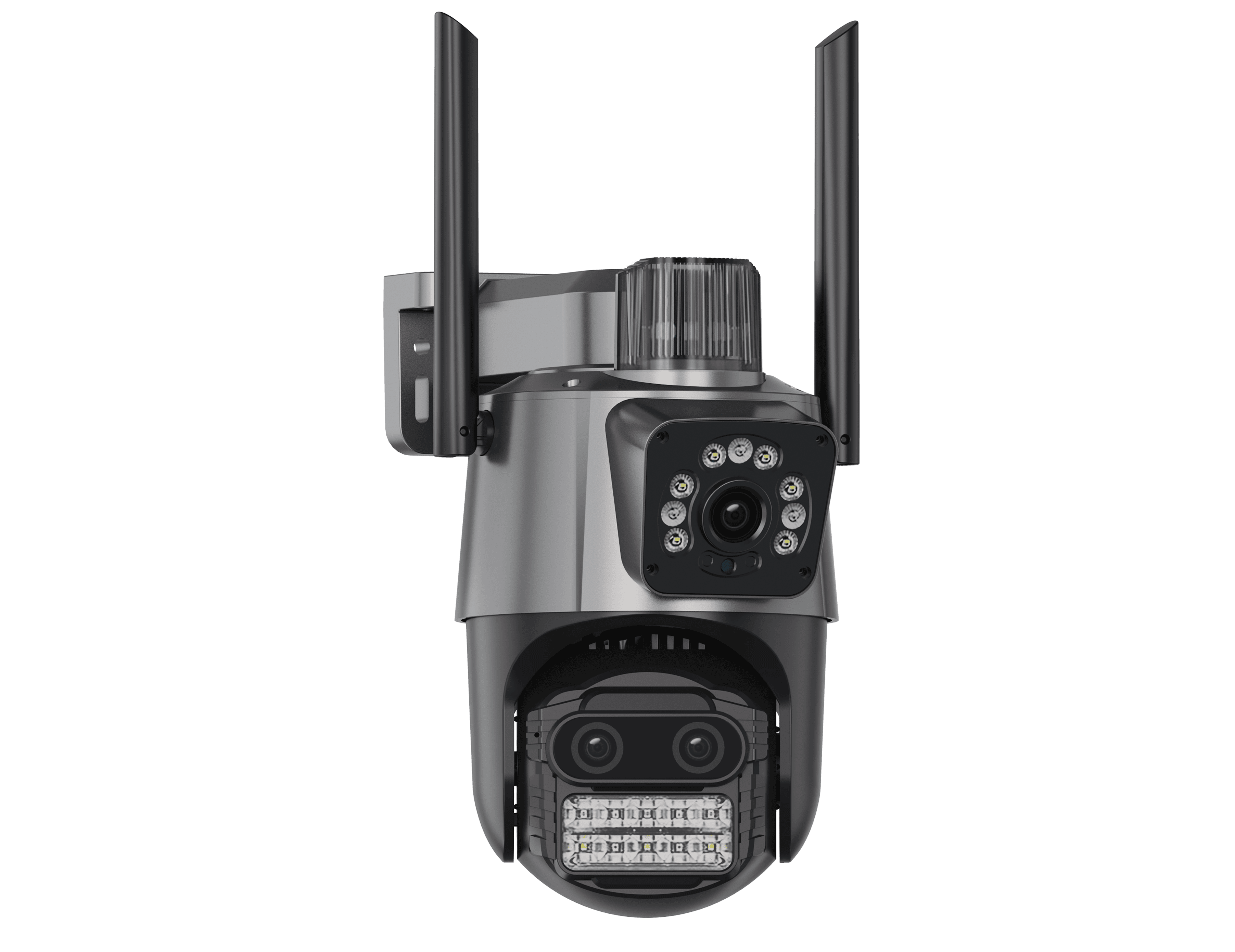 Visión nocturna total: LED IR + LUZ BLANCA Total: 12 luces blancas + 7 luces IR (superior: 6 blancas + 3 IR, inferior: 6 blancas + 4 IR).
