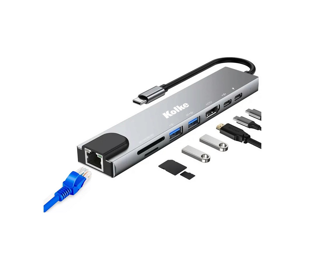 Este dispositivo compacto y ligero permite expandir las capacidades de su equipo, añadiendo 2 puertos USB C, 1 puerto HDMI, 2 puertos USB, 1 Slot SD, 1 Slot TF y 1 puerto RJ45.