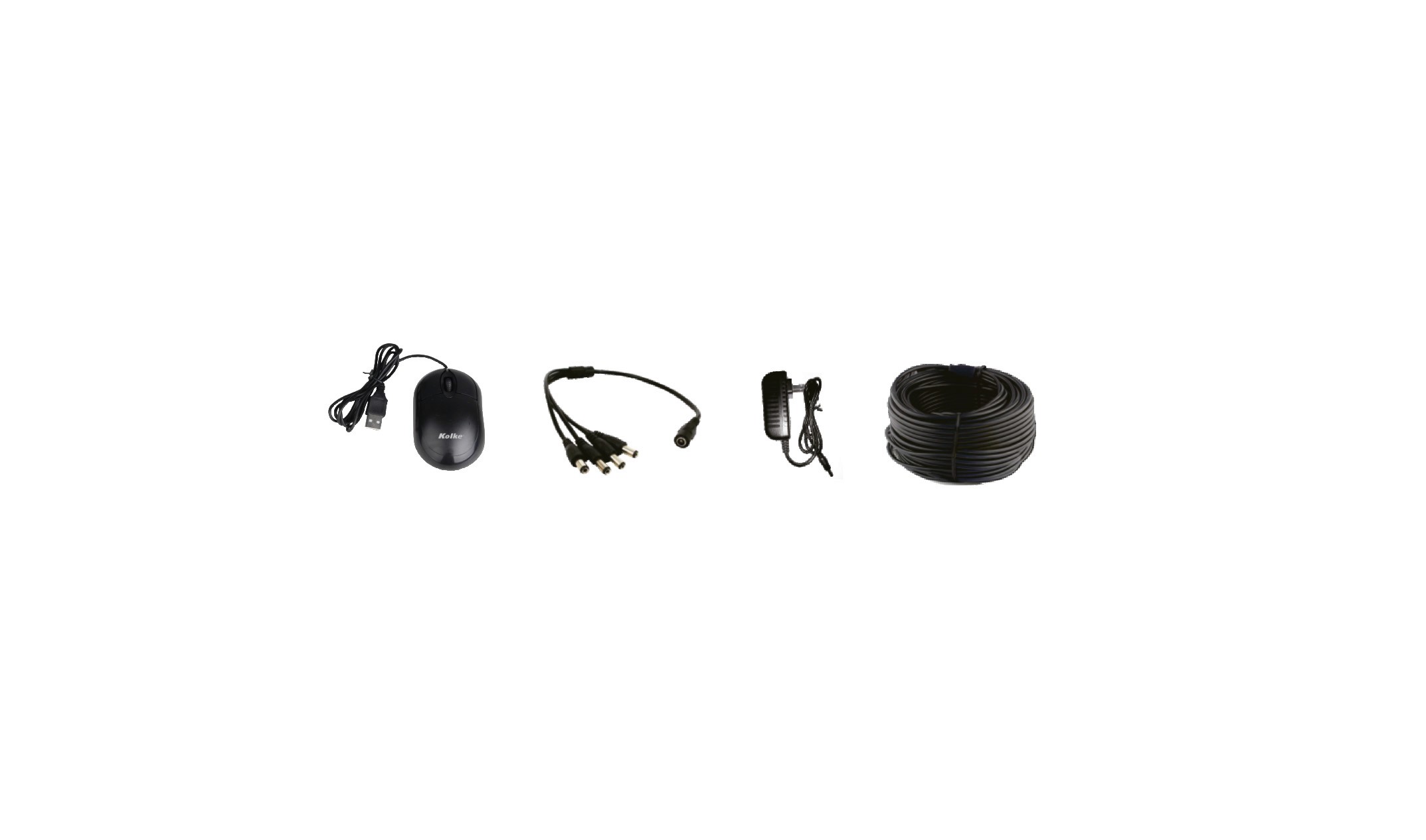 Accesorios incluidos: 4 cables de alimentación de video integrados de 18,3 metros, 2 fuentes de alimentación de 12V/2A, 1 cable 4 en 1 mouse, Paquete de tornillos para instalación.